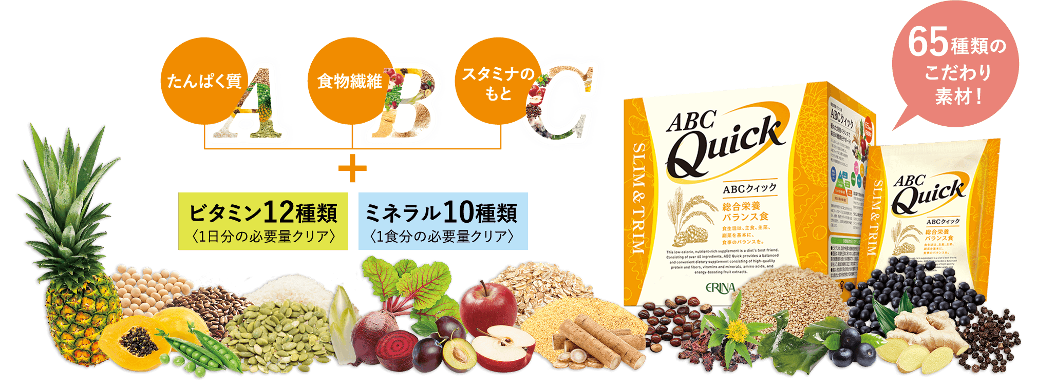 ABCクィックなら毎日に必要な栄養素を手軽に・おいしく・しっかり補給。