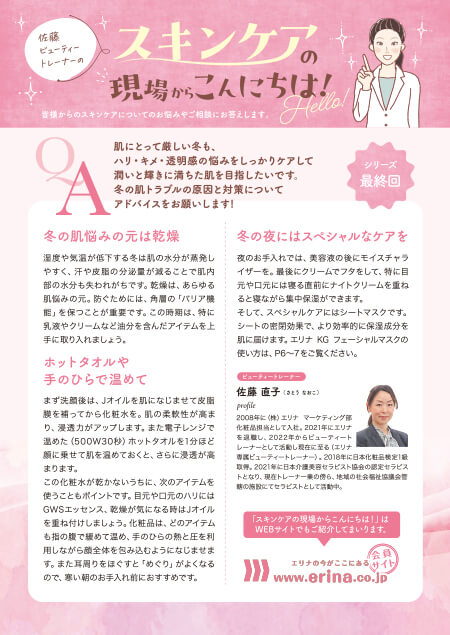 肌にとって厳しい冬も、ハリ・キメ・透明感の悩みをしっかりケアして潤いと輝きに満ちた肌を目指したいです。